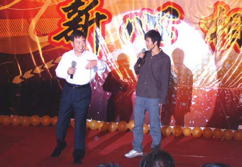 “新心相迎”2009迎新晚会在A4-122隆重举行。校党委书记徐志平、校党委副书记胡浙平、校学生处、团委负责人应邀出席晚会。bbin