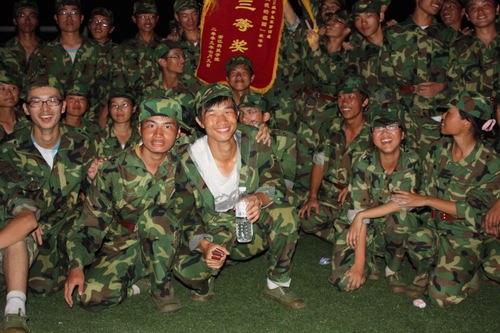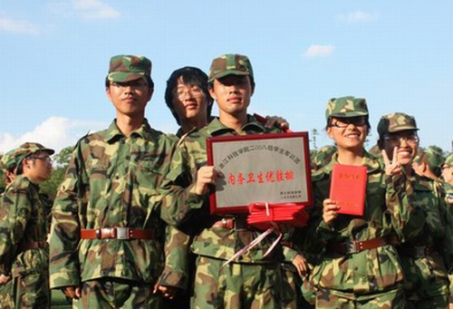 学生组成的第三方阵获得“军训会操优胜排”,应用物理082班所在的二十三排获得“内务卫生优胜排”。